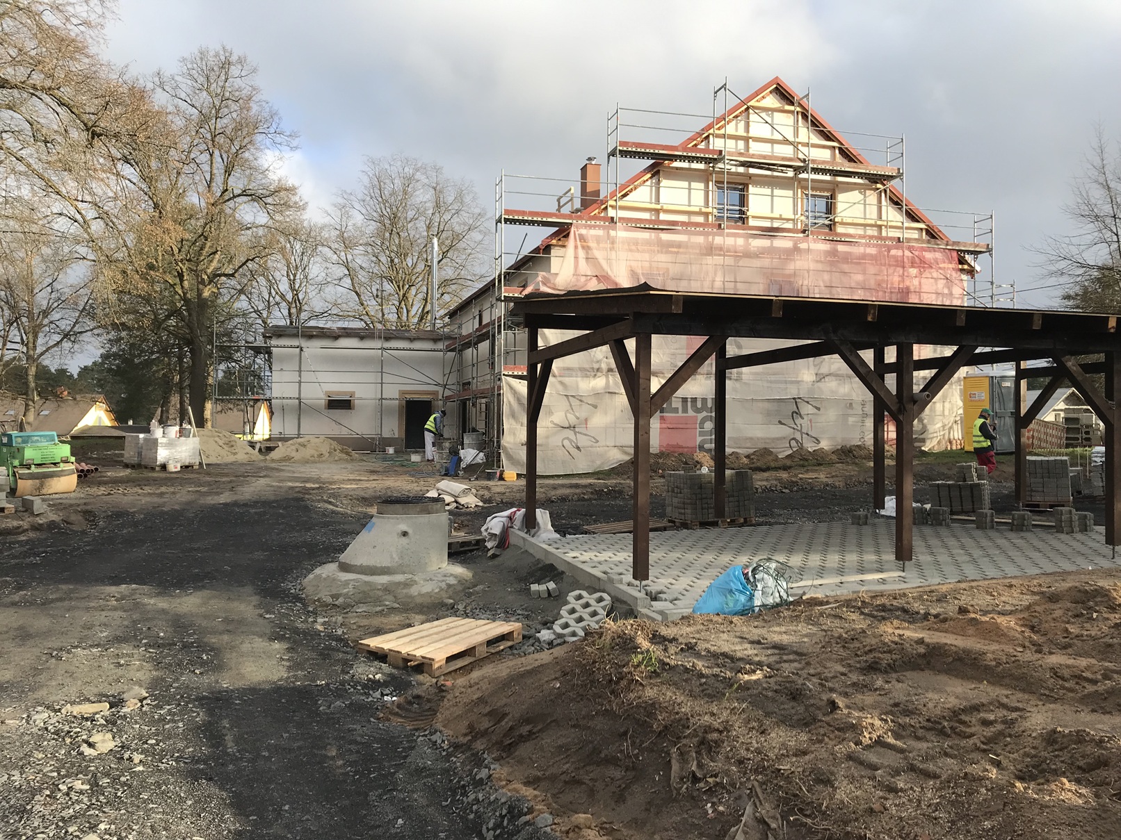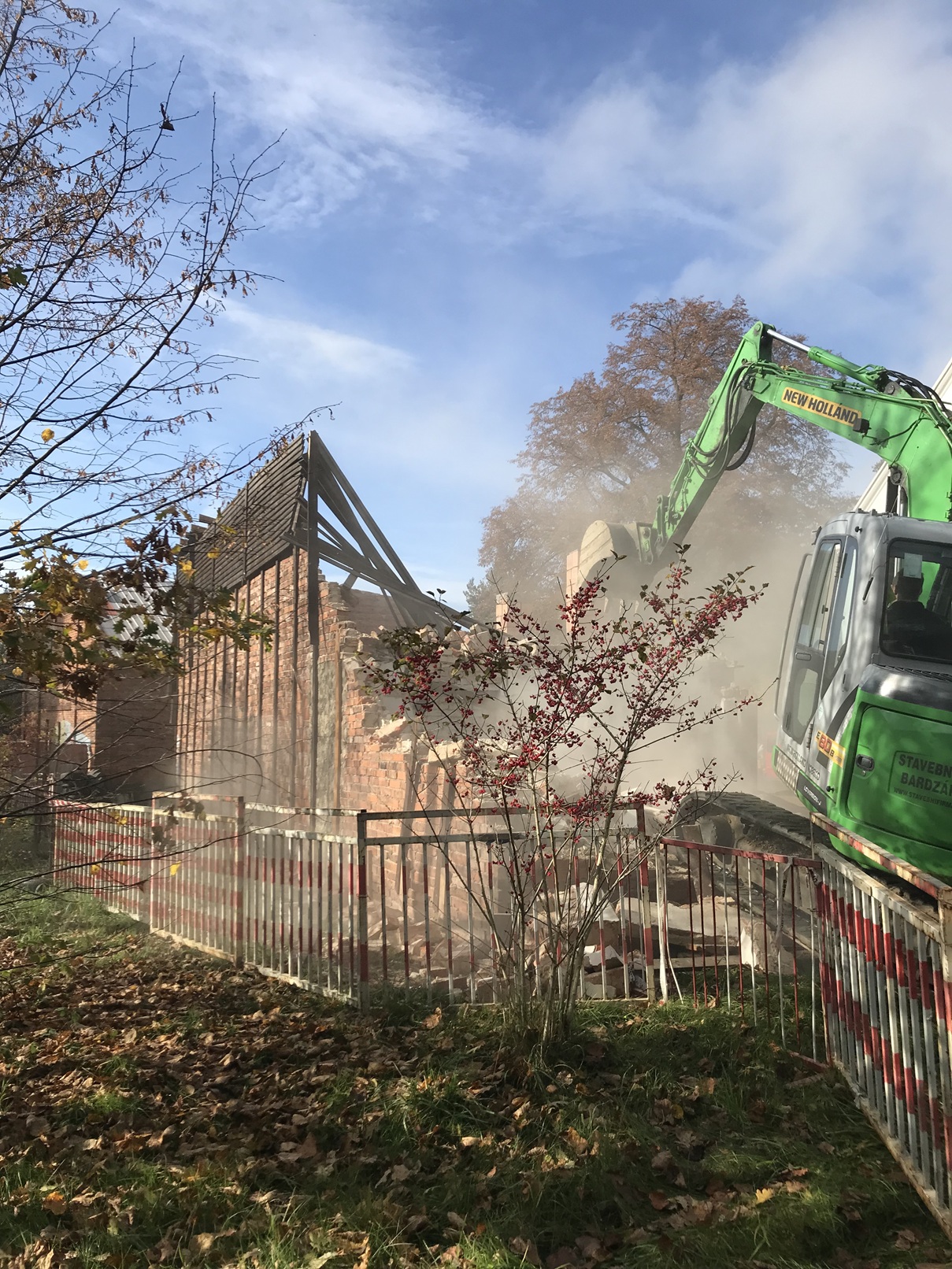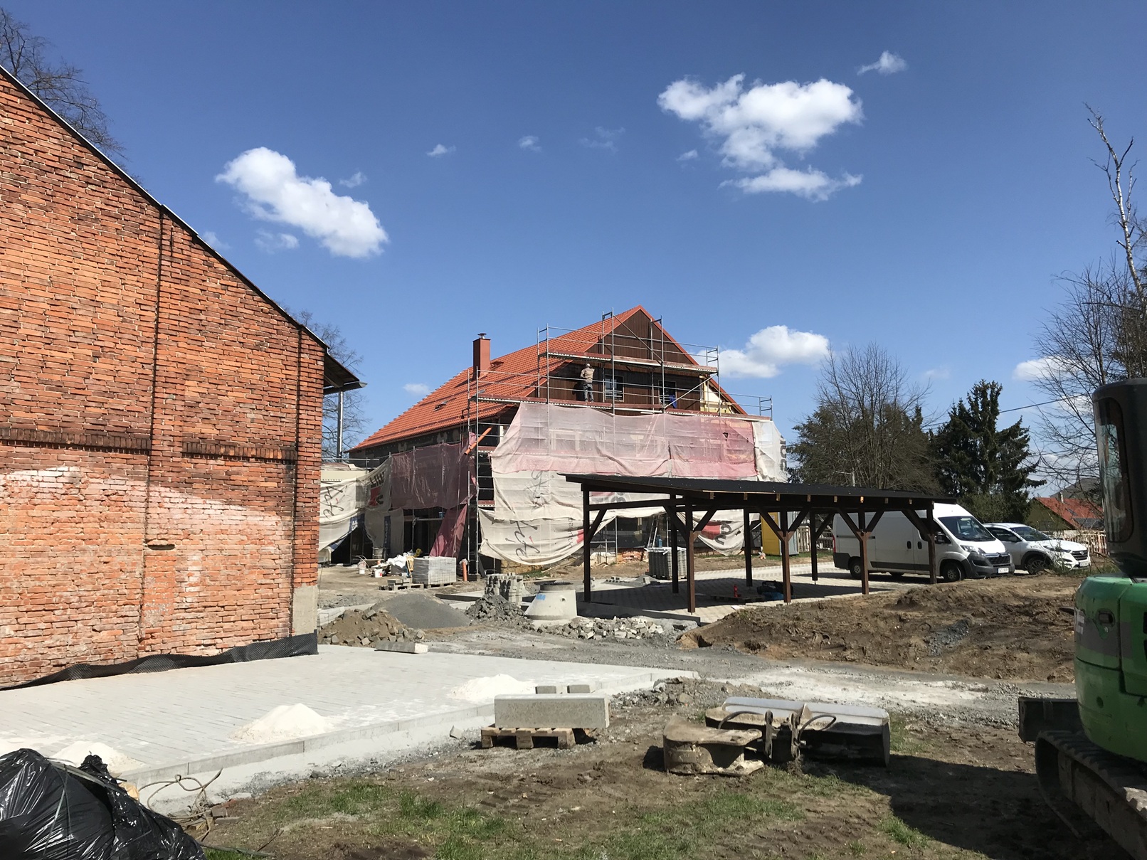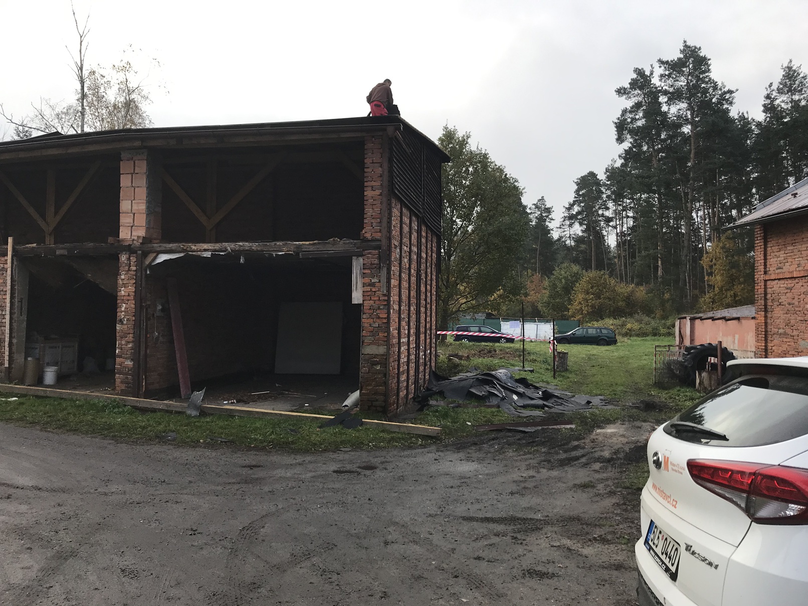 • Demolice a příprava území: Prvním krokem byla odborná demolice staré, staticky nevyhovující stodoly, čímž se uvolnil prostor pro novou infrastrukturu a technické zázemí.