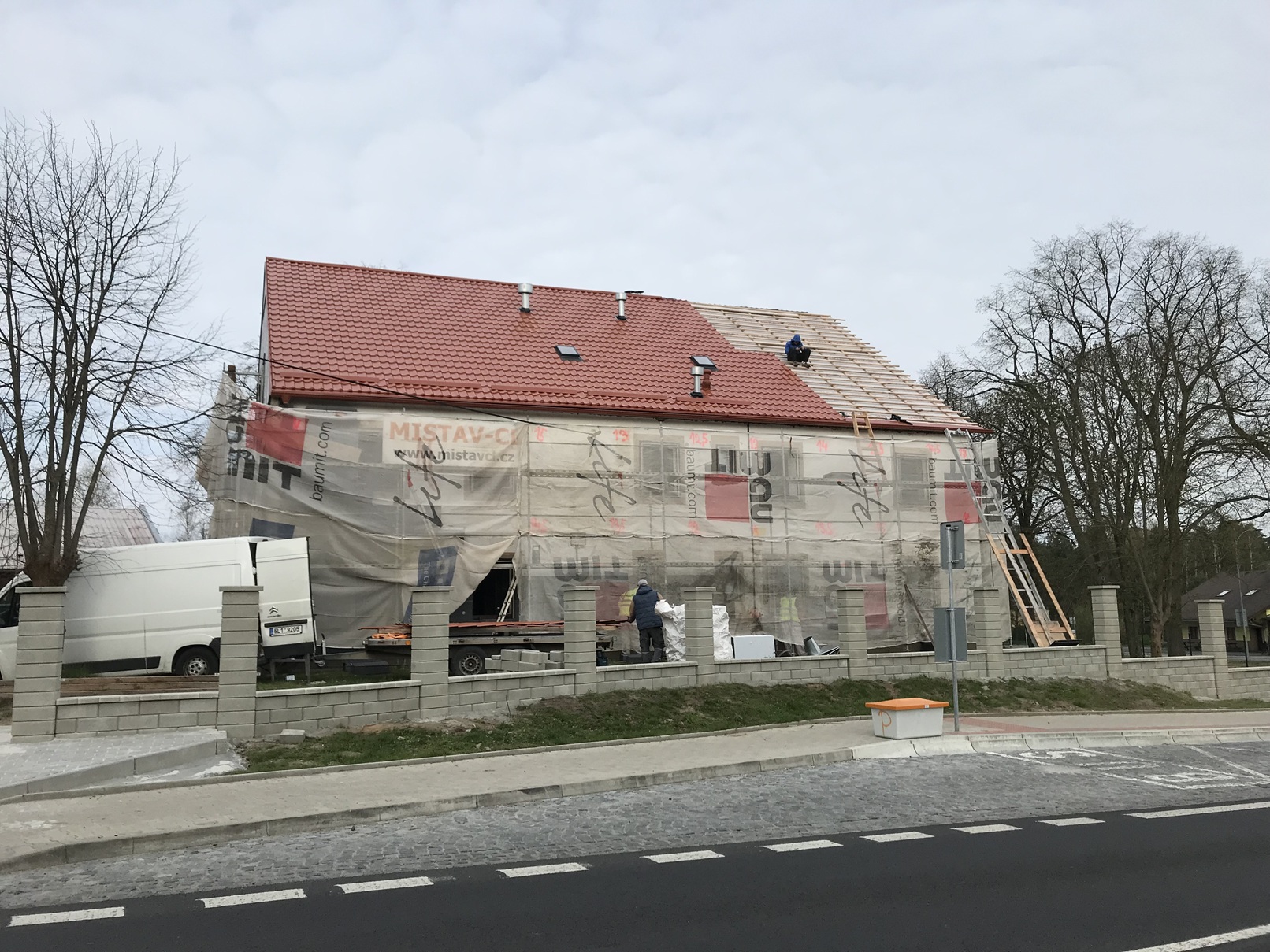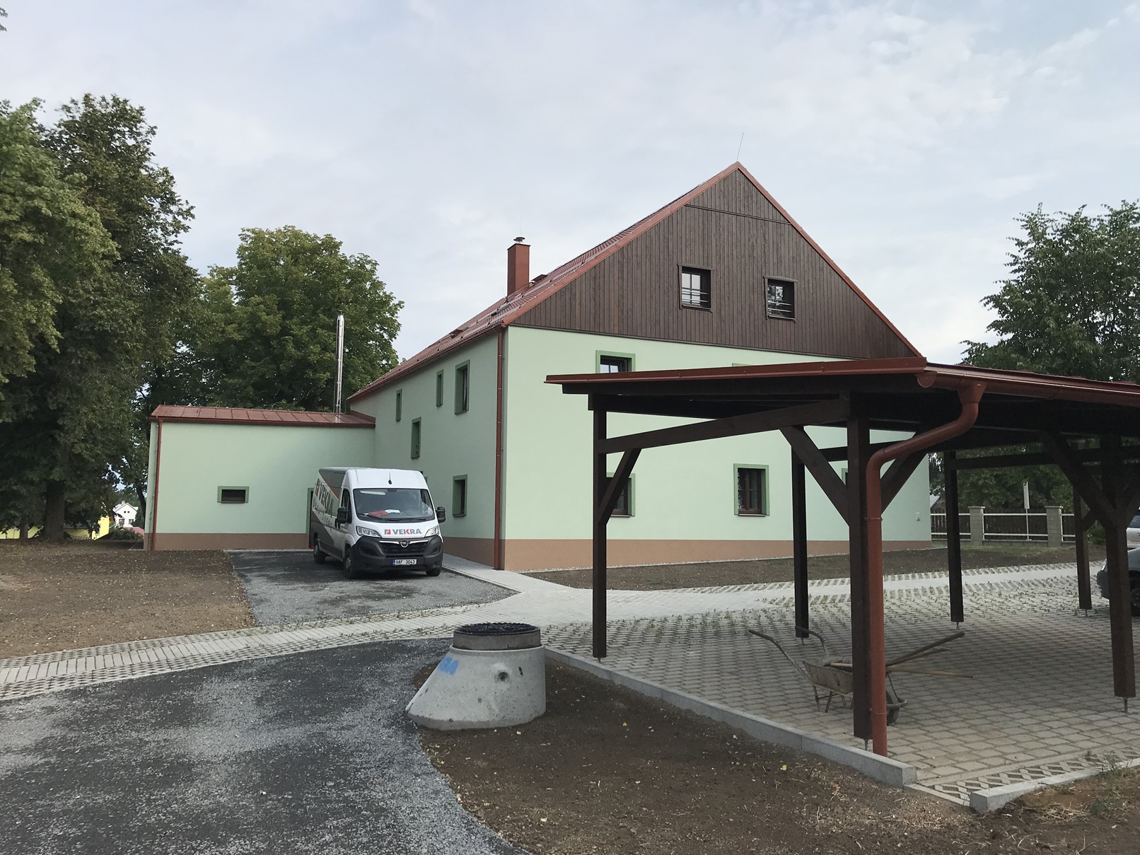 • Exteriér: Nová fasáda s důrazem na tepelnou izolaci a instalace moderní střešní krytiny včetně dřevěného obložení štítu.
