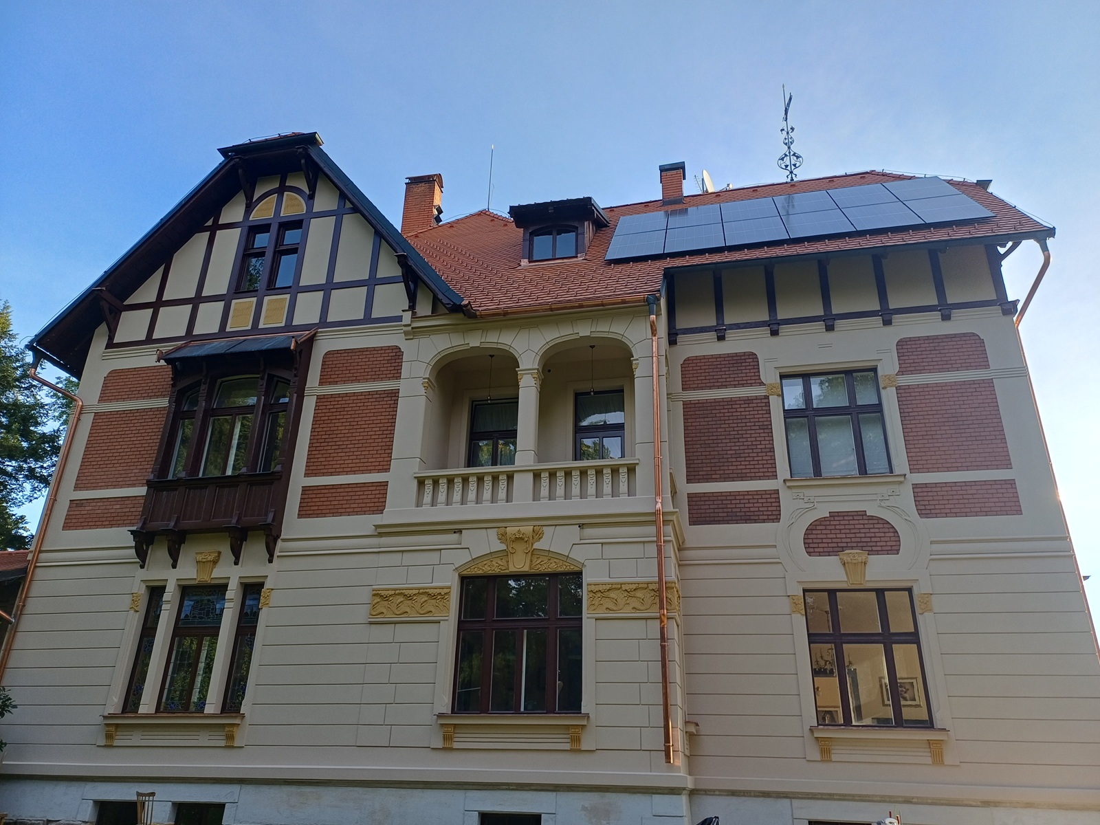 Po dokončení rekonstrukce se vila ve Sloupu v Čechách znovu stala výraznou dominantou místa. Fasáda dnes působí elegantně, lehce a přirozeně – přesně tak, jak si secesní architektura zaslouží. Jemné detaily jsou opět čitelné, barevnost podtrhuje plastiku fasády a celek působí harmonicky a nadčasově.