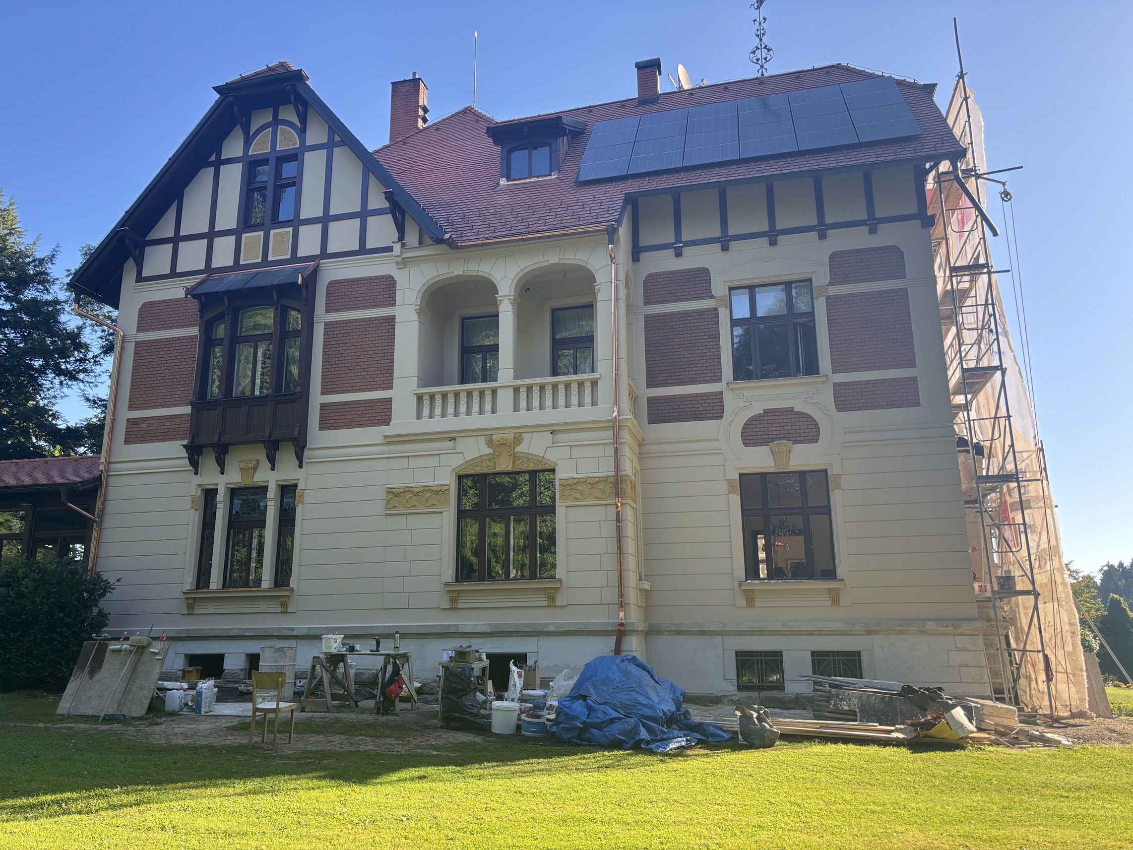Secesní architektura má jedinečné kouzlo – jemné ornamenty, harmonické proporce a smysl pro detail, který se dnes už jen tak nevidí. Když jsme se pustili do rekonstrukce fasády secesní vily ve Sloupu v Čechách, bylo nám od začátku jasné, že nepůjde o běžnou zakázku. Cílem nebylo dům „opravit“, ale vrátit mu jeho původní noblesu a důstojnost, a to s maximálním respektem k historii stavby.