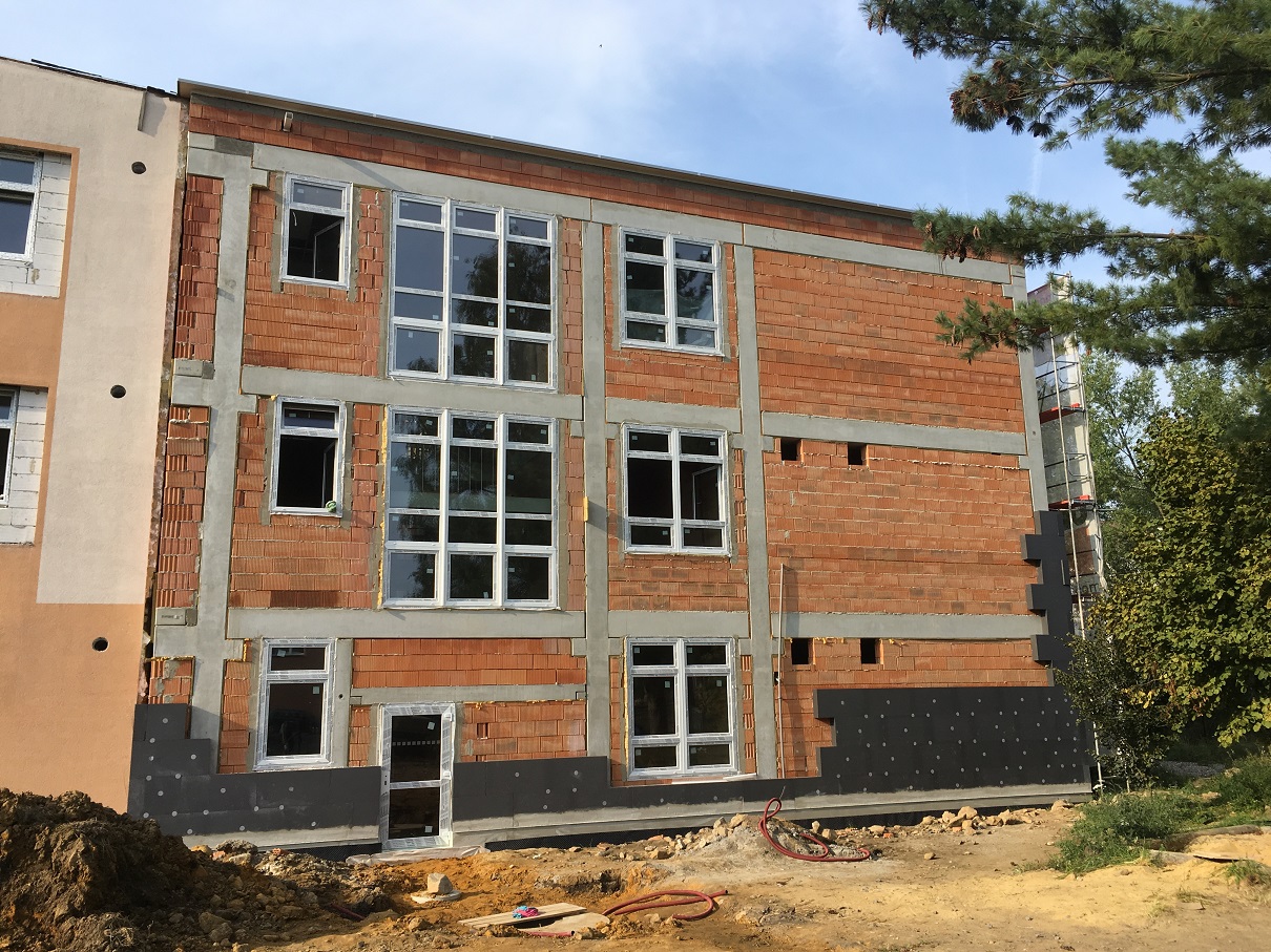 kompletní renovaci fasády původní budovy včetně zateplení a modernizace vzhledu.